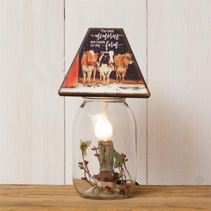 New Primitive Country Cow Farm Memories Canning Jar Light Plug In