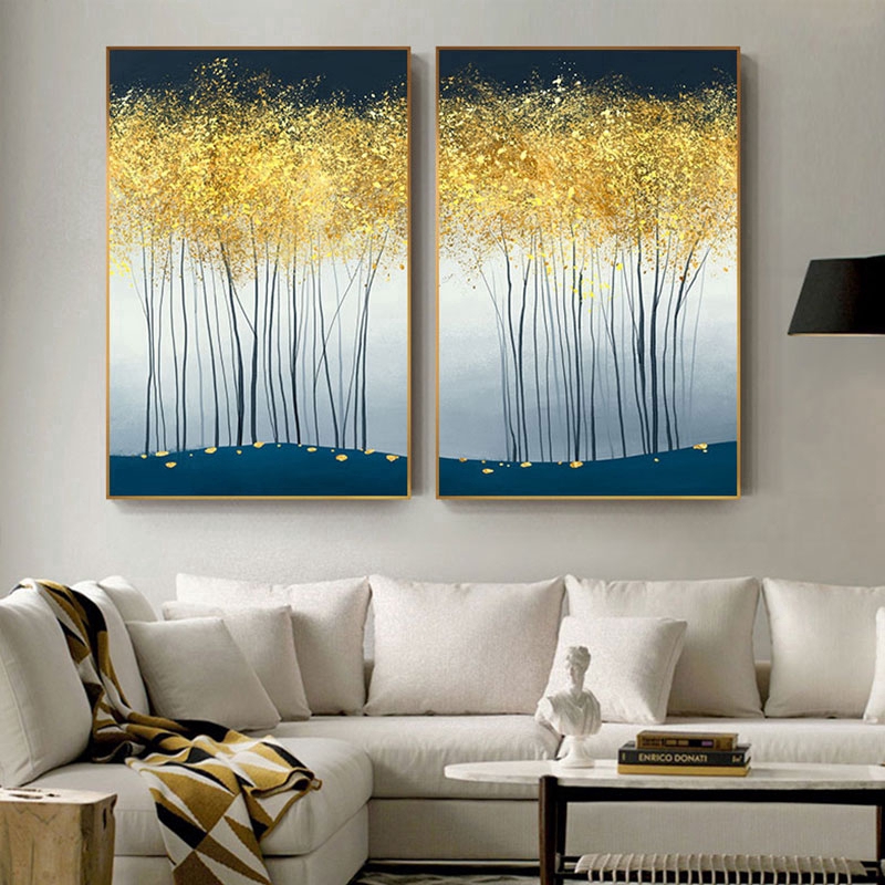 2pcs Xanthophyllum Yellow Leaf Tree Canvas Painting Poster Wall