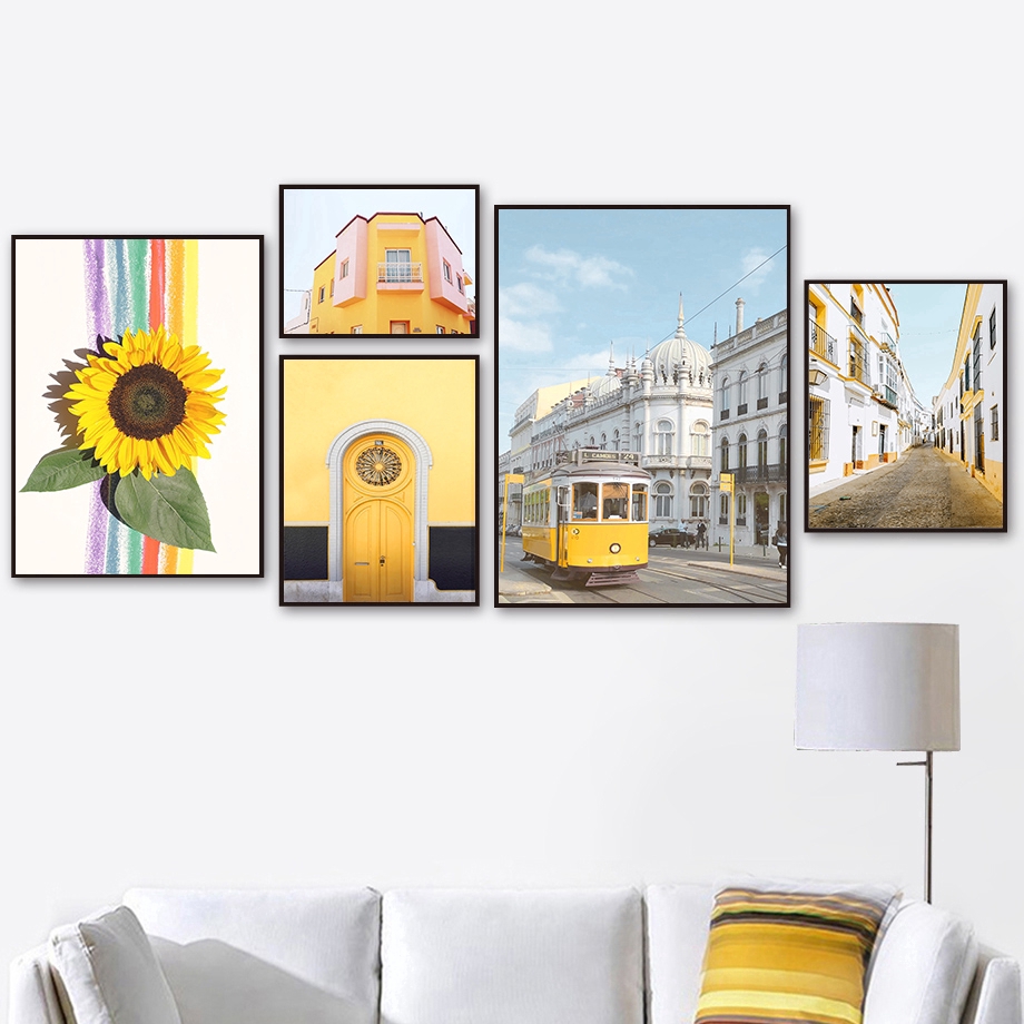 Wall Pictures For Living Room Yellow Morocco Door Sunflower Tram