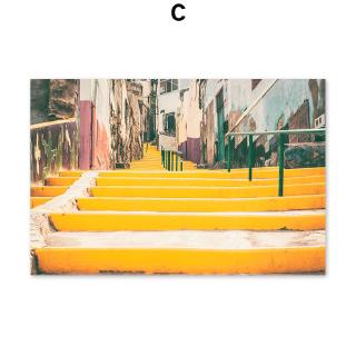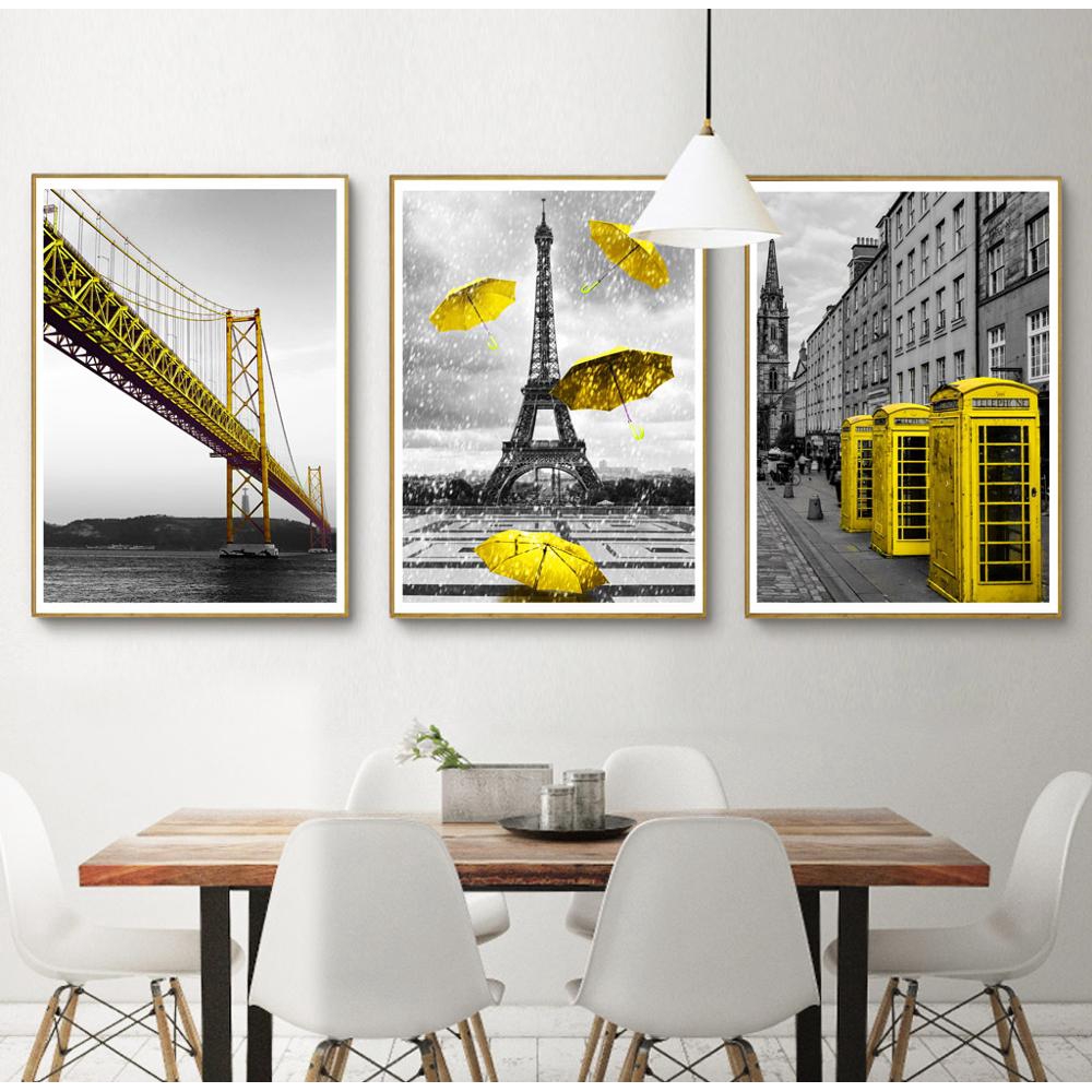 Yellow Landscape Bridge Tower Wall Art Poster Prints Canvas