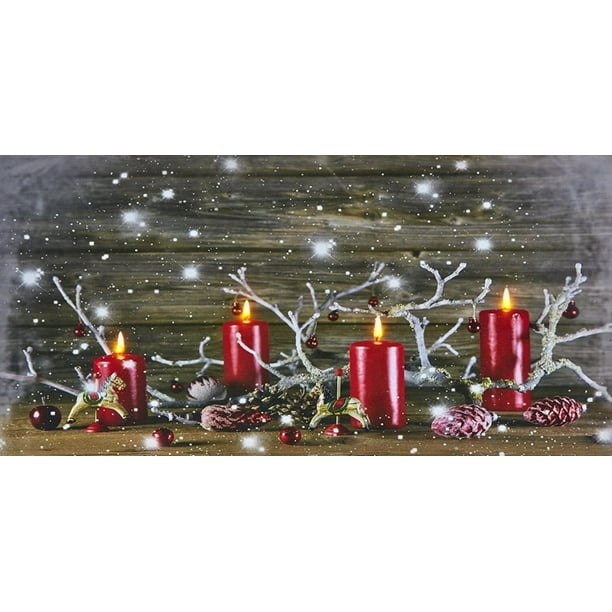 Battery Operated Led Lighted Red Candles Canvas Christmas Wall Art