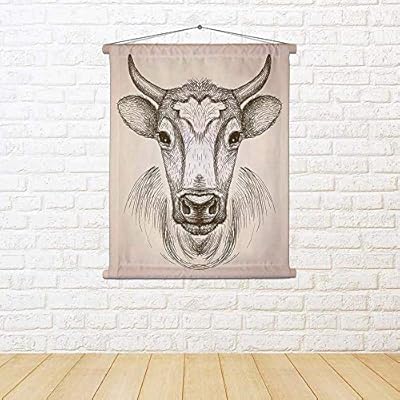 Artzfolio Cow Face Portrait Canvas Painting Tapestry Scroll Art