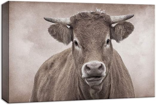 Amazon Com Nwt Canvas Wall Art Wildlife Cow Front Face Painting