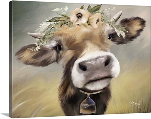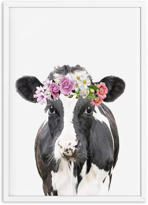 Amazon Com Farm Animal Canvas Cow Wall Art Wearing Flowers On