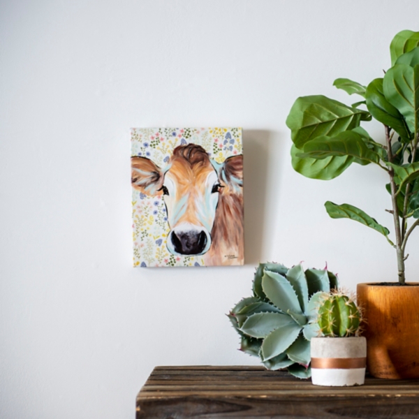 Amazon Com Farm Animal Canvas Cow Wall Art Wearing Flowers On