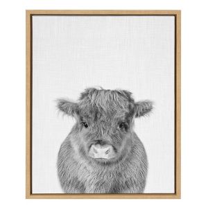 18 X 24 Sylvie Baby Cow Framed Canvas By Simon Te Tai Natural