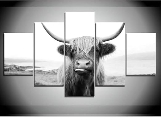 Lp Art Canvas Print Wall Art Black And White Freedom Highland Cow