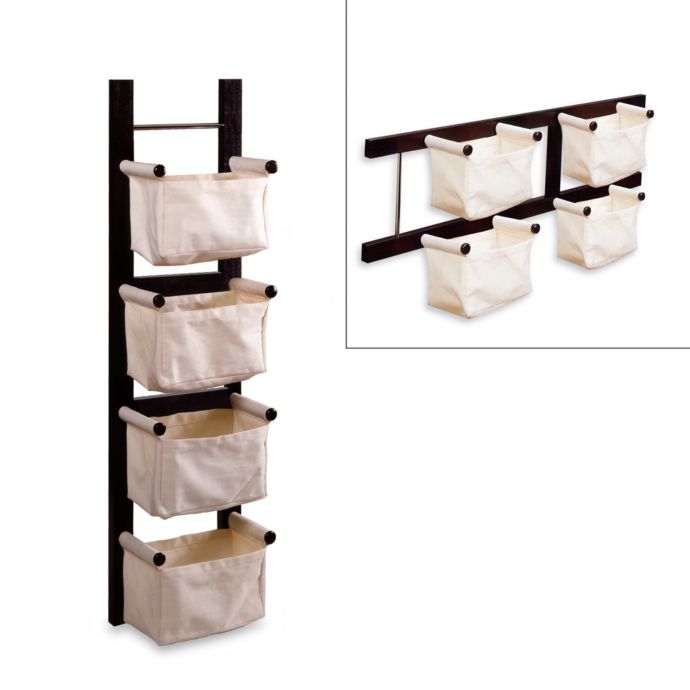 Espresso Magazine Rack With Canvas Baskets Bed Bath Beyond