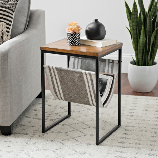 Side Table With Striped Canvas Magazine Rack Kirklands