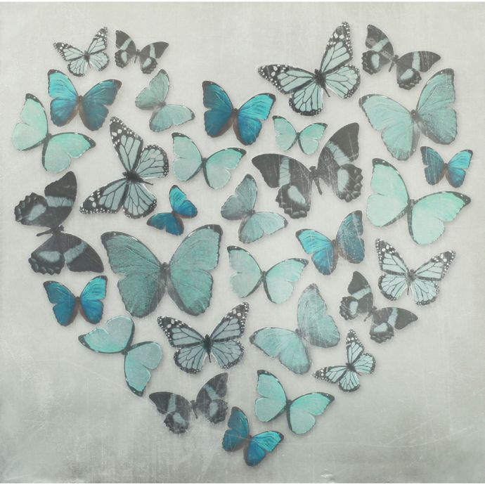Arthouse Butterfly Love Foil Finish Canvas Wall Art In Teal Bed