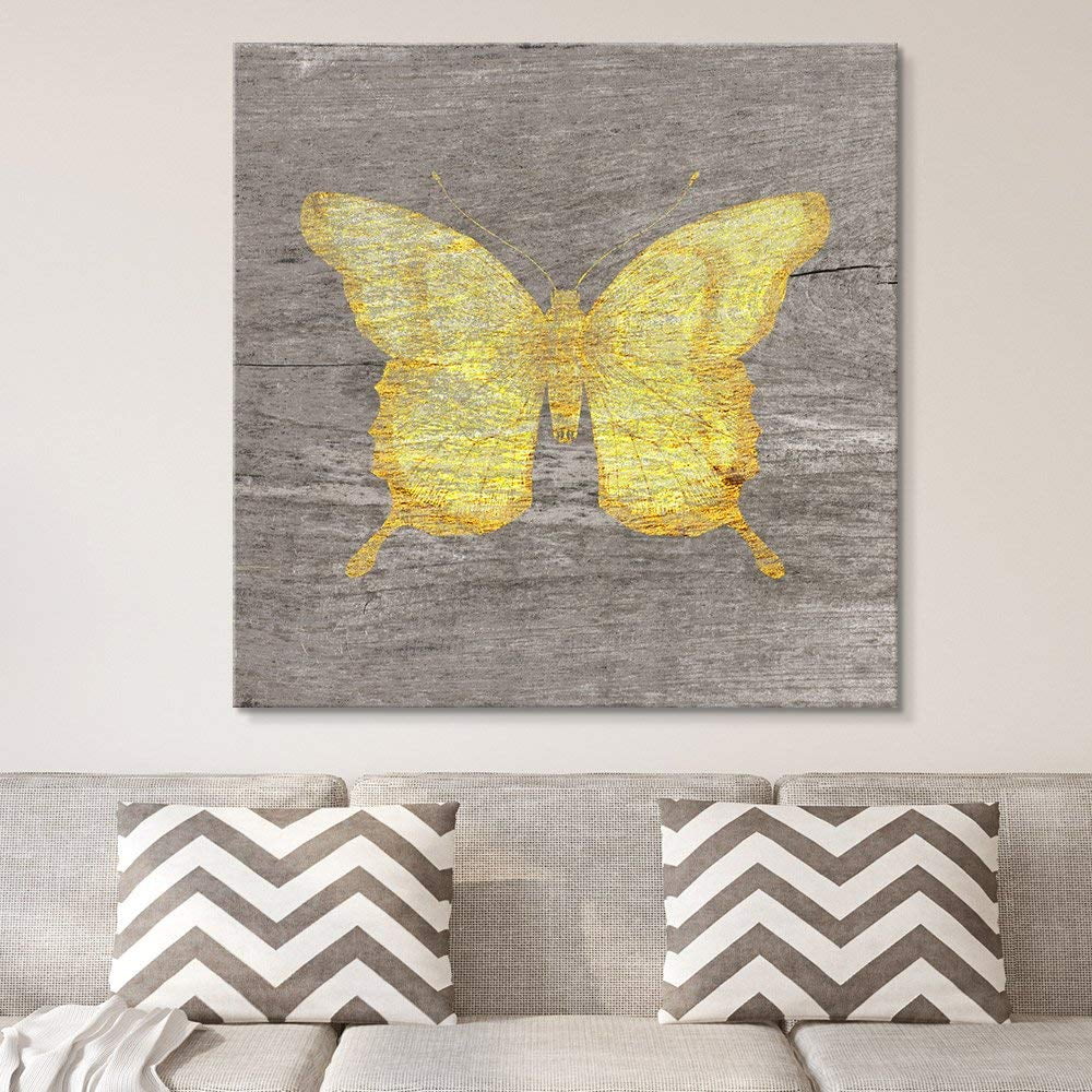 Wall26 Square Canvas Wall Art Yellow Butterfly Wood Effect