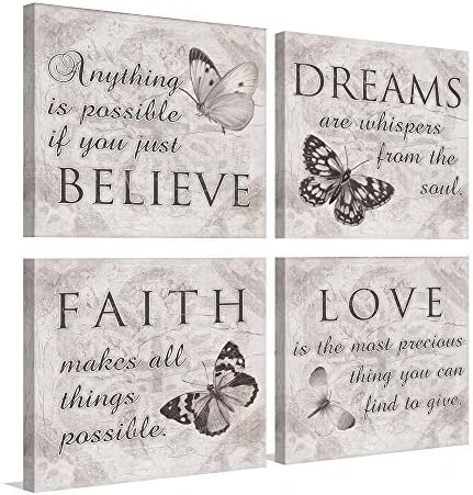 Amazon Com Inspirational Butterfly Wall Art 4 Panels Grey