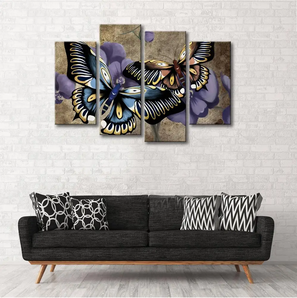 Modern Hd Printed Painting Canvas Home Decor 4 Piece Butterfly