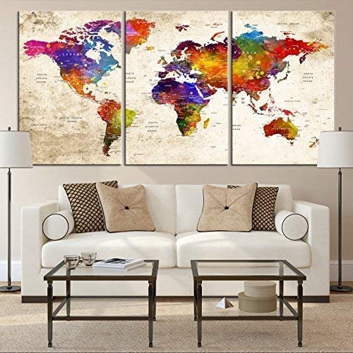 3 Piece World Map Canvas Abstract Colorful Wall Art Painting Home