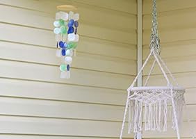 Coastal Blue Green White Capiz Shells Wind Chimes 27 Inches Garden