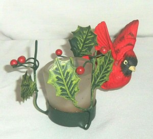 Christmas Holiday Cardinal Votive Candle Holder Tea Light Holder