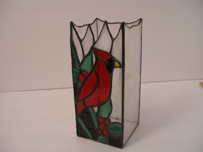Christmas Cardinal Candle Holder Stained Glass No Bottom Loc 3
