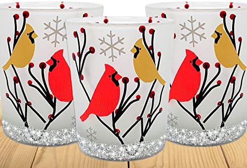3 Glass Small Cardinal And Tree Frost Votive Christmas Decor
