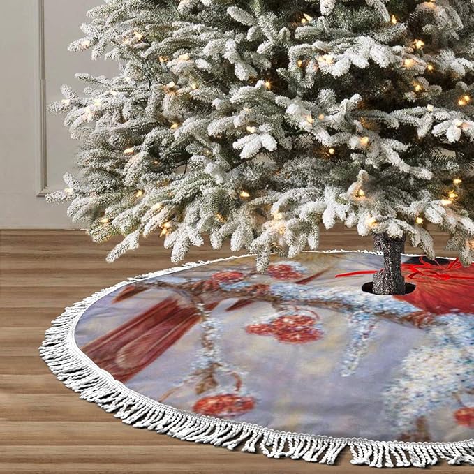 48 Cardinal Holly Christmas Tree Skirt Unique Home Decor
