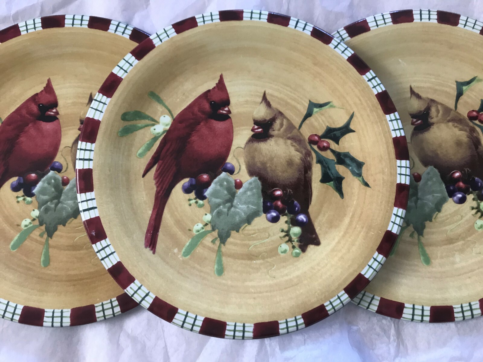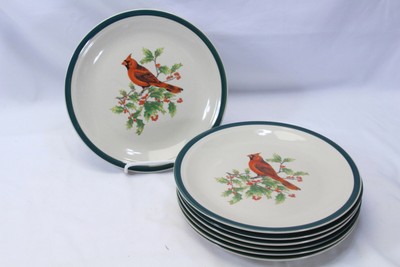 5 Gibson Winter Bird Cardinal 10 Dinner Plates Christmas For