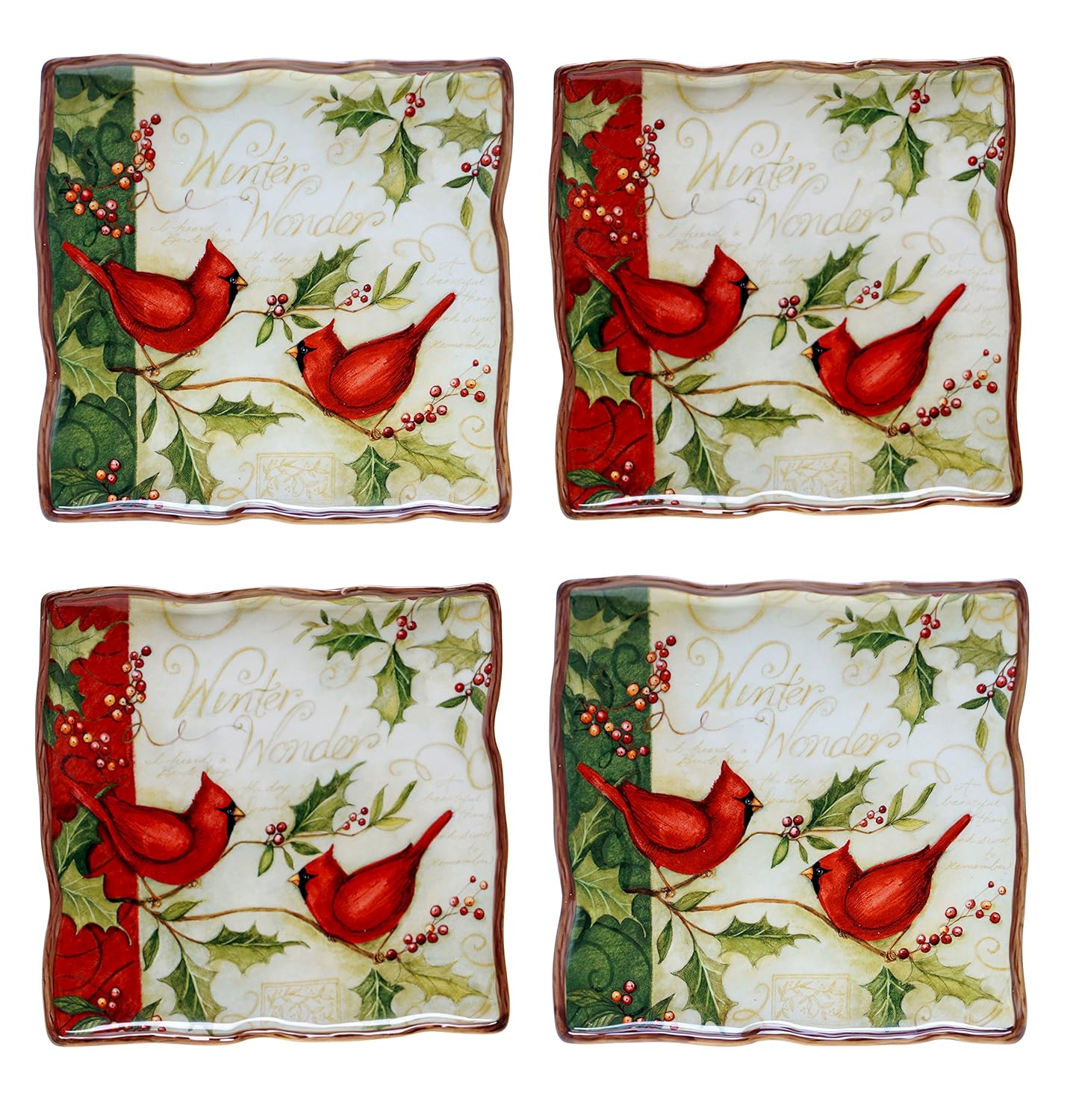 Amazon Com 222 Fifth Winter Cardinal Dinner Plate Set Of 4