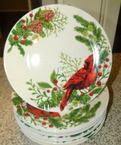 8 Lenox Winter Greetings Everyday Cardinal Dinner Plates In