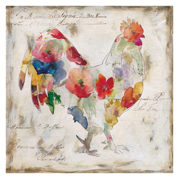 Flowered Rooster By Carol Robinson Wrapped Canvas Painting Art