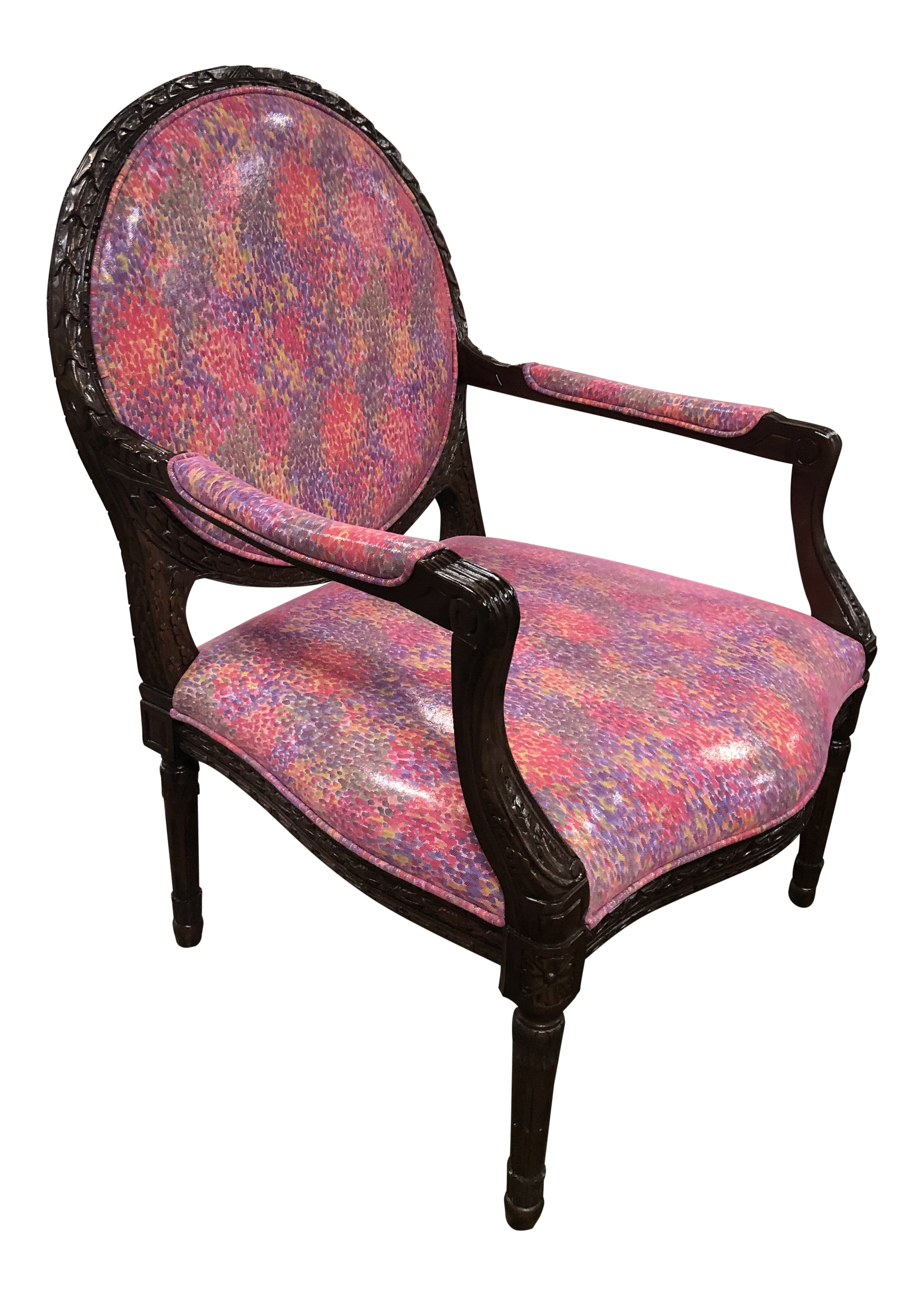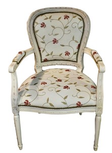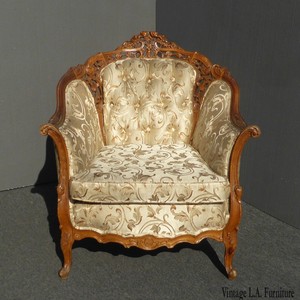 Vintage French Provincial Carved Accent Chair W Floral Fabric Plaid Back Ebay