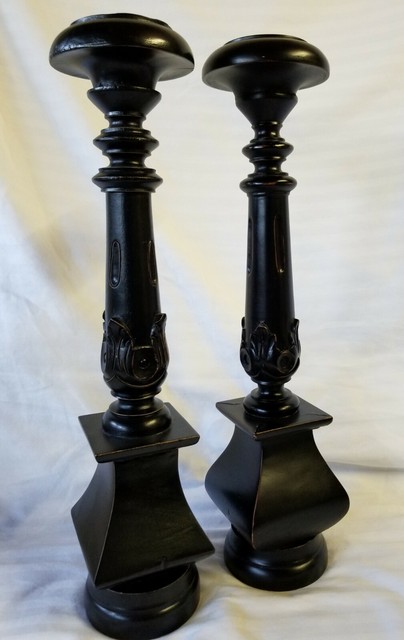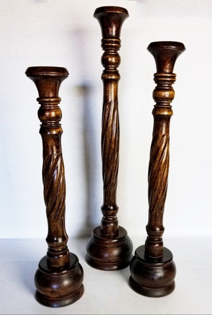 3 Very Large 24 To 36 Hand Carved In India Wood Pillar Candle Holders Sticks Ebay