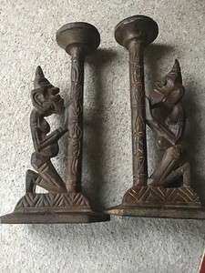 Beautiful Tall Teak Wood Hand Carved Candle Holders Artisan Costa Rica Rustic For Sale Online