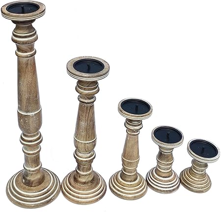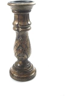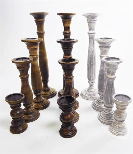 20cm Height Antique Effect White Brown Wooden Hand Carved Pillar Church Candle Holder Stick Mango Small 20cm Amazon Co Uk Kitchen Home