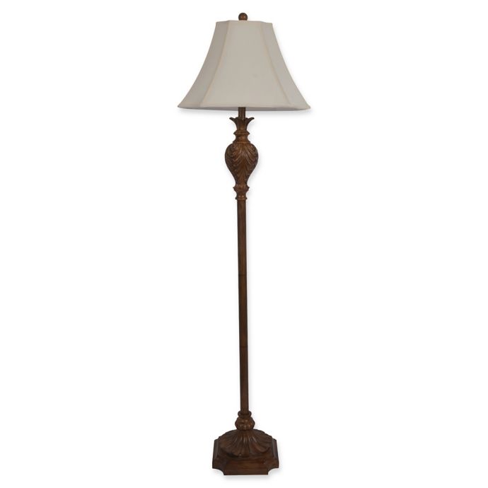 Decor Therapy Roland Carved Floor Lamp With Faux Silk Shade Bed