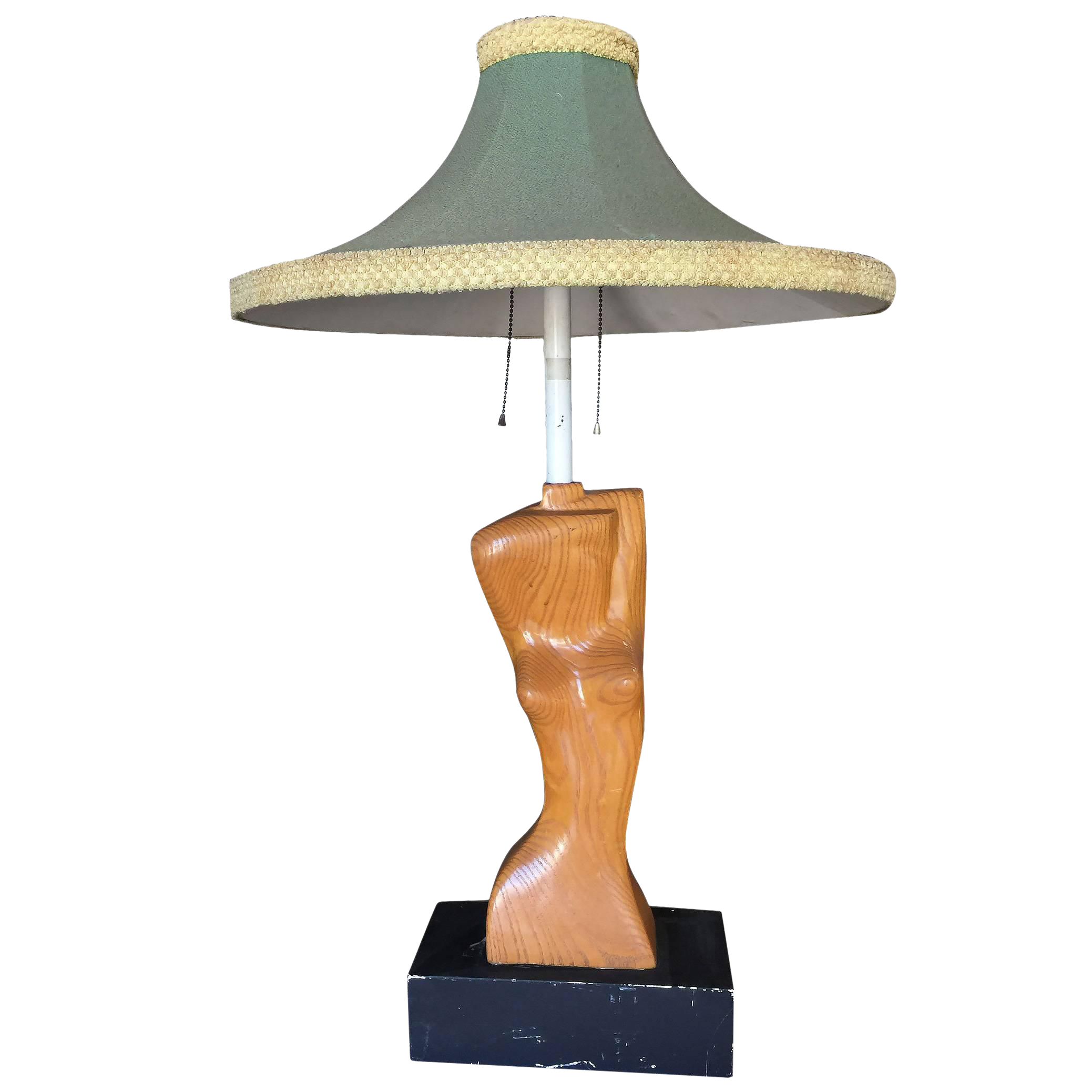 Modernist Two Faced Carved Wood Table Lamp 1950s 131196