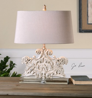 New Crystal Base Stone Ivory Wash Table Lamp Old World Carved