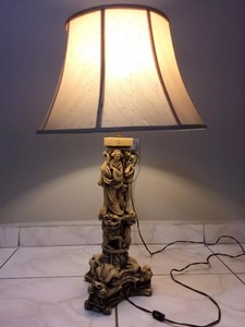 China Hand Carved Resin Ivory Color Antique Table Lamp Samurai