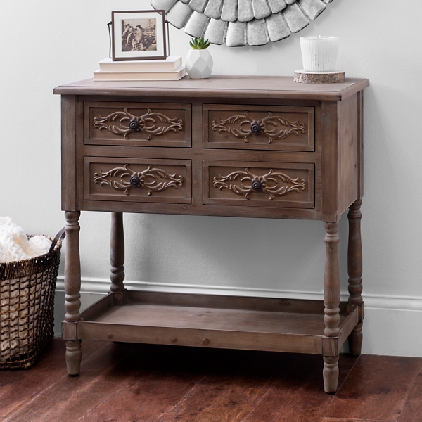 Distressed Carved Wood Console Table Kirklands
