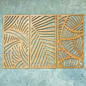 Small Wall Art 3 Timber Panels With Palm Leaf Design Carved Timb