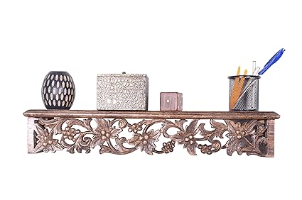 Onlineshoppee Tallado Hand Carved Solid Wood Wall Shelf Amazon In Electronics
