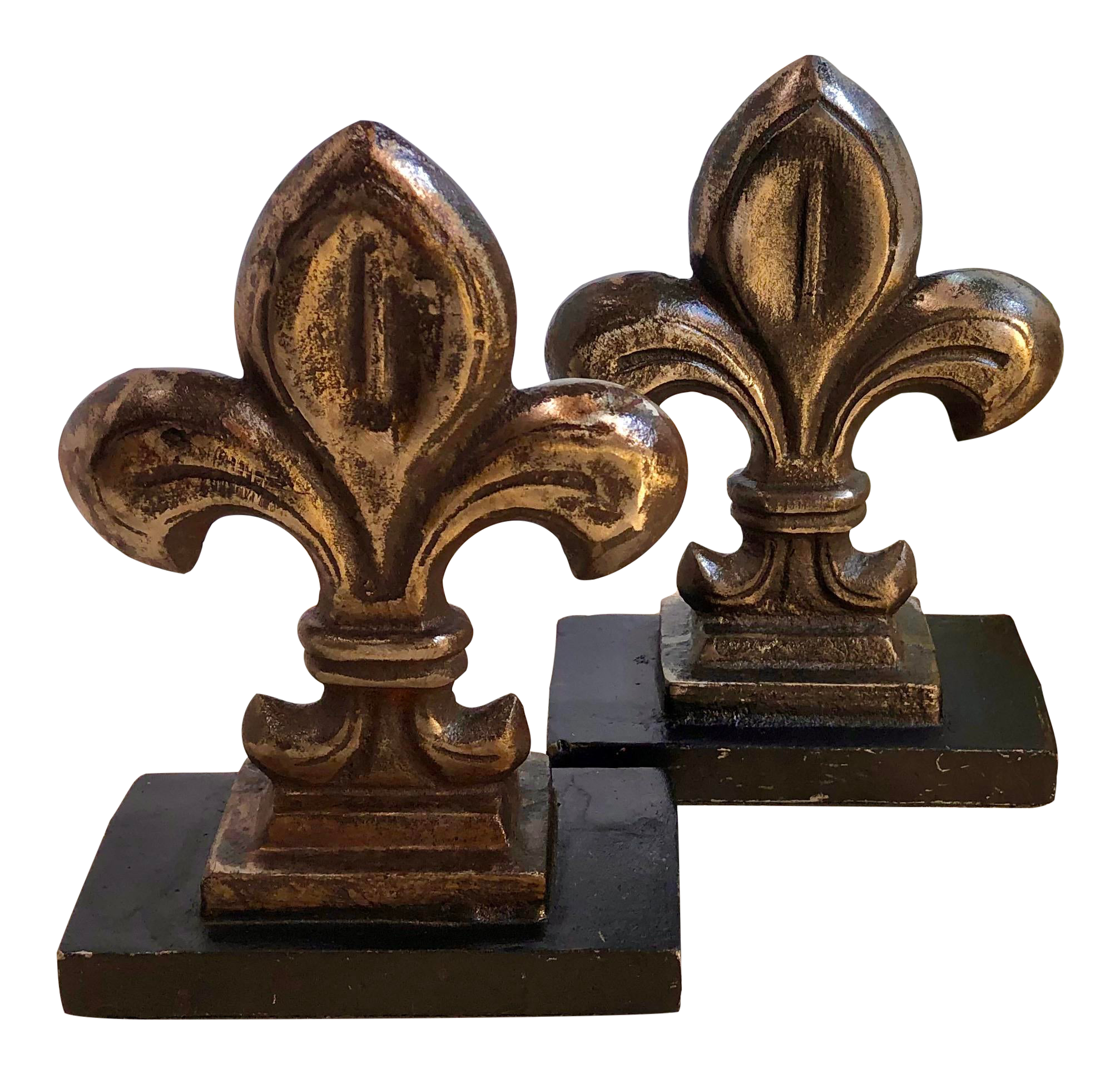 Pair Of Bronze Cast Iron Tall Fleur De Lis Bookends Chairish