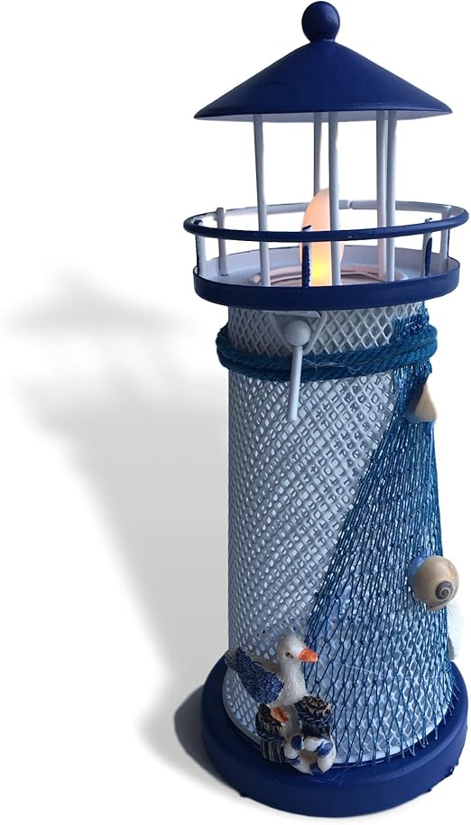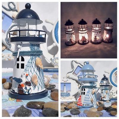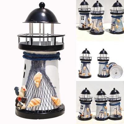 Zslmx Vintage Blue Lighthouse House Iron Candelabrum Mediterranean