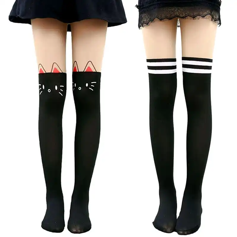 Women Cute Cat Bear Over Knee Socks Stocking Tight Hosiery Tattoo