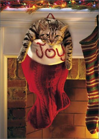 Fat Cat In Stocking Box Of 10 Avanti Funny Christmas Cards