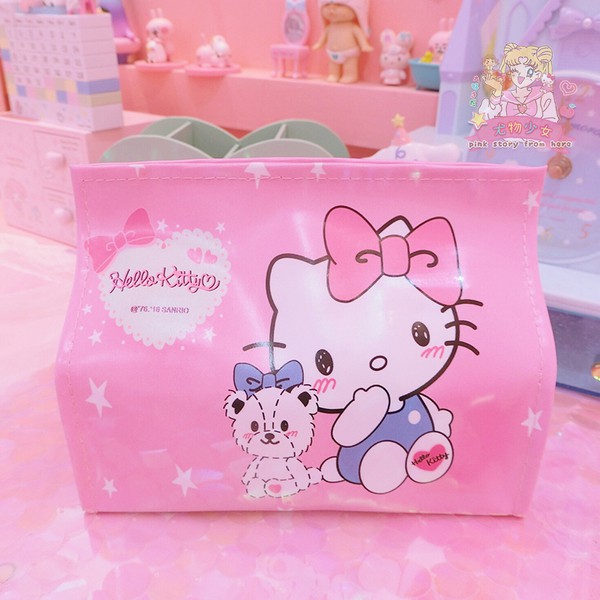 Cute Cartoon Girl Paper Towel Set Leather Car Tissue Box Merlot