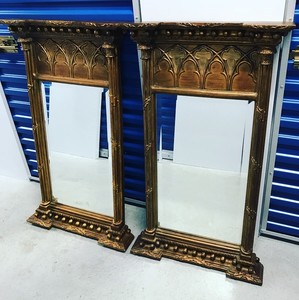 A Vintage Two Panel Gilded Gothic Style Cathedral Mirror Usa