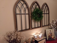Set 3 Farmhouse Wall Decor Cathedral Window Distressed Chippy