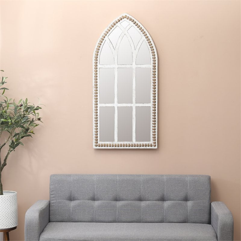 Luxen Home White Rustic Wood Cathedral Wall Mirror