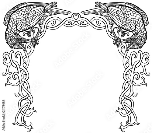 Vector Illustration Of Two Ravens Gothic Celtic Knot Frame Black