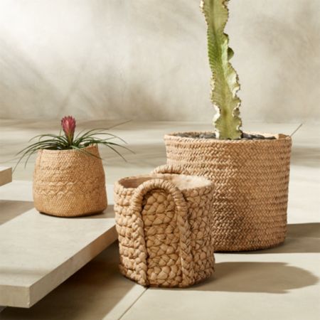Kalalou Woven Basket Cement Planter Large Amazon Co Uk Garden