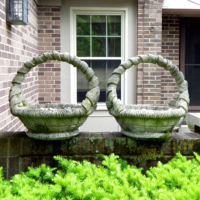 Cement Basket Planter Pot Set Of 2 Antique Farmhouse