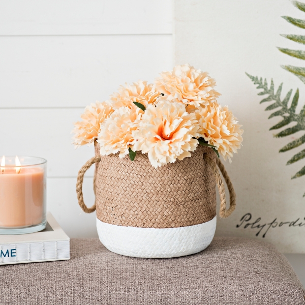 Planter Cement Handle Plant Pot Weave Basket Look Gardening Pots